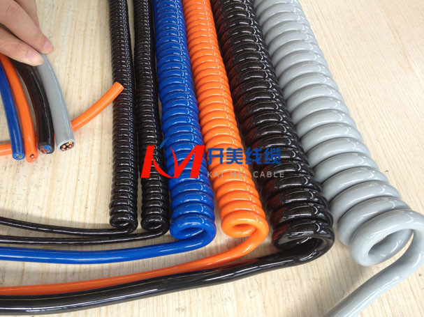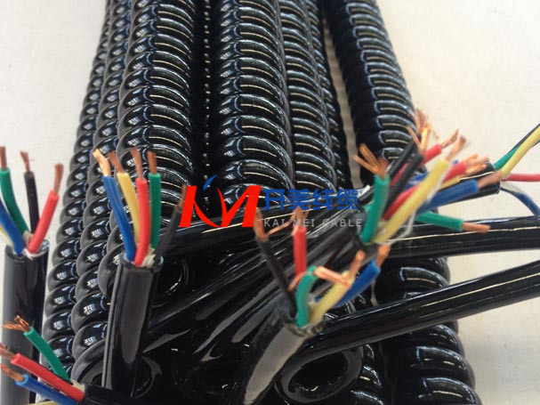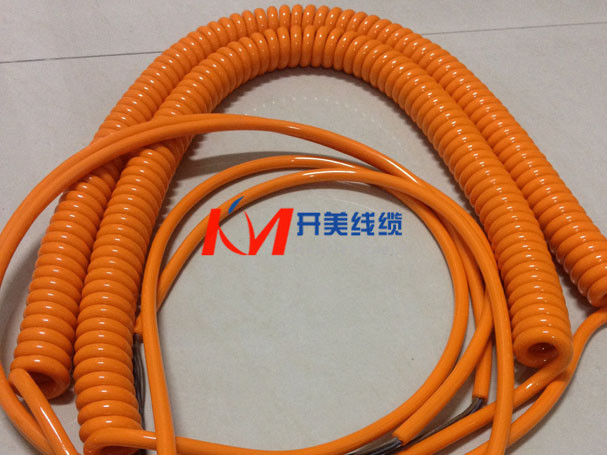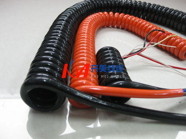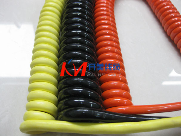 螺旋电缆线 螺旋线绝缘材料:可采用聚氯乙烯,聚乙烯,聚丙烯或叫联聚乙烯及氟塑科,以满足不同场合的要求。