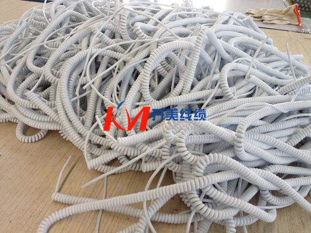 螺旋电缆线 螺旋线绝缘材料:可采用聚氯乙烯,聚乙烯,聚丙烯或叫联聚乙烯及氟塑科,以满足不同场合的要求。