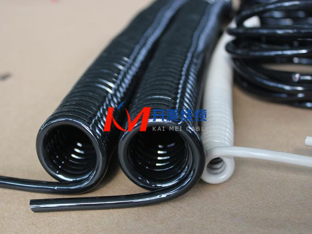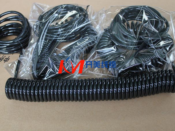 螺旋电缆线 螺旋线绝缘材料:可采用聚氯乙烯,聚乙烯,聚丙烯或叫联聚乙烯及氟塑科,以满足不同场合的要求。