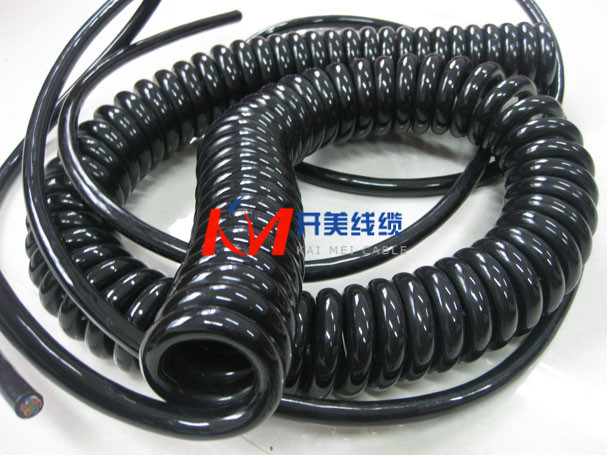 螺旋电缆线 螺旋线绝缘材料:可采用聚氯乙烯,聚乙烯,聚丙烯或叫联聚乙烯及氟塑科,以满足不同场合的要求。