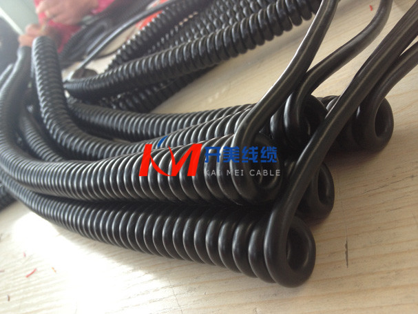 螺旋电缆线 螺旋线产品特性:具有良好的柔韧性和弹性(伸长长度可达原弹簧长度3.5-4倍)。有良好的耐寒性,阻燃性,耐油性和耐磨性。可根据场合不同要求生产各类螺旋型弹簧线。