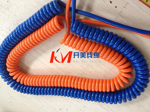 螺旋电缆线 螺旋线绝缘材料:可采用聚氯乙烯,聚乙烯,聚丙烯或叫联聚乙烯及氟塑科,以满足不同场合的要求。