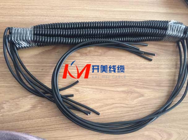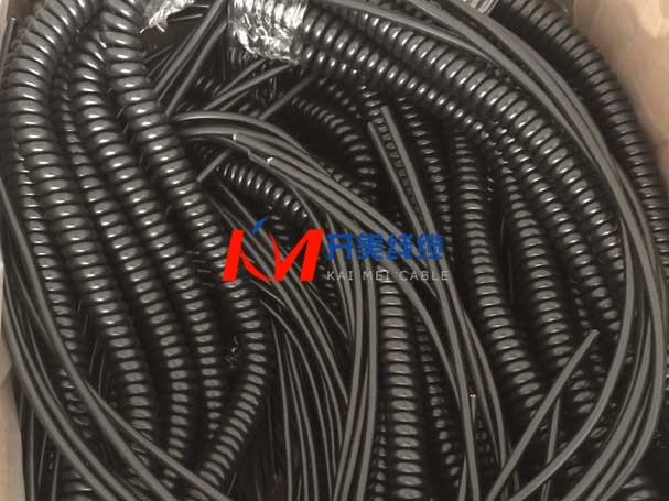 螺旋电缆线 螺旋线绝缘材料:可采用聚氯乙烯,聚乙烯,聚丙烯或叫联聚乙烯及氟塑科,以满足不同场合的要求。
