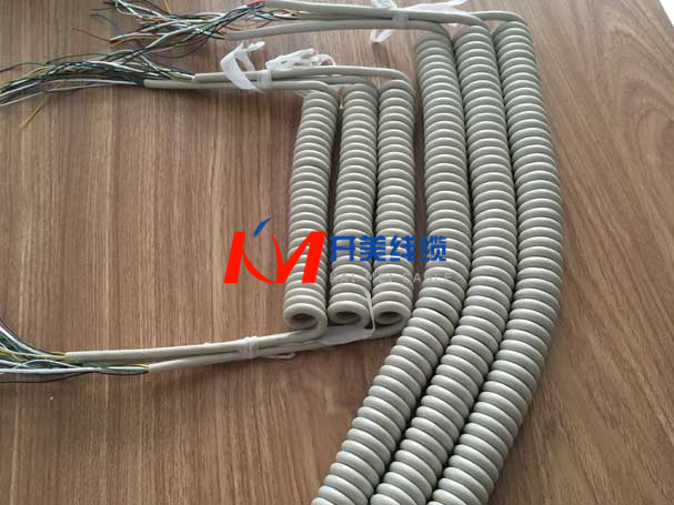 螺旋电缆线 螺旋线绝缘材料:可采用聚氯乙烯,聚乙烯,聚丙烯或叫联聚乙烯及氟塑科,以满足不同场合的要求。