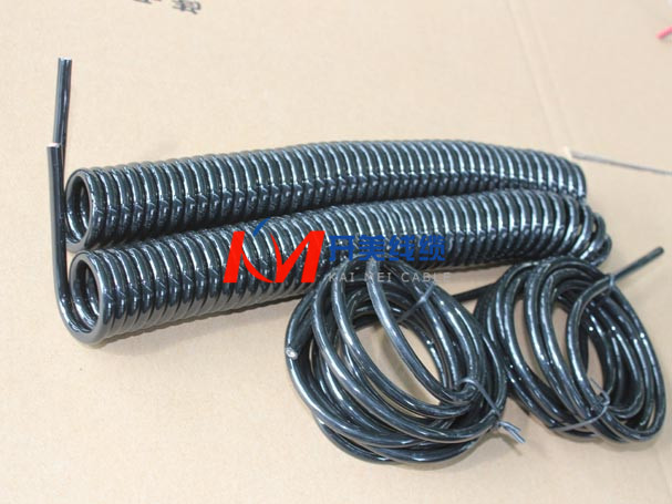 螺旋电缆线 螺旋线绝缘材料:可采用聚氯乙烯,聚乙烯,聚丙烯或叫联聚乙烯及氟塑科,以满足不同场合的要求。