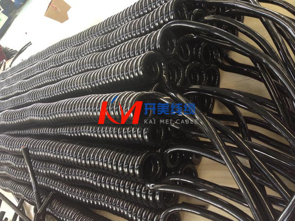 螺旋电缆线 螺旋线绝缘材料:可采用聚氯乙烯,聚乙烯,聚丙烯或叫联聚乙烯及氟塑科,以满足不同场合的要求。