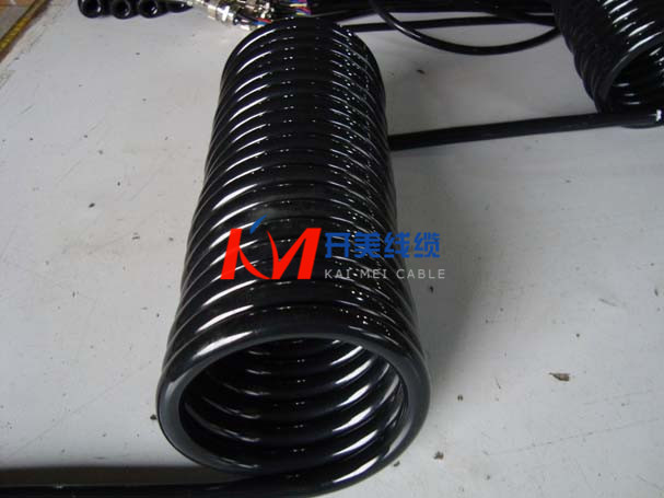 螺旋电缆线 螺旋线绝缘材料:可采用聚氯乙烯,聚乙烯,聚丙烯或叫联聚乙烯及氟塑科,以满足不同场合的要求。