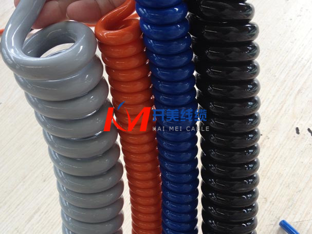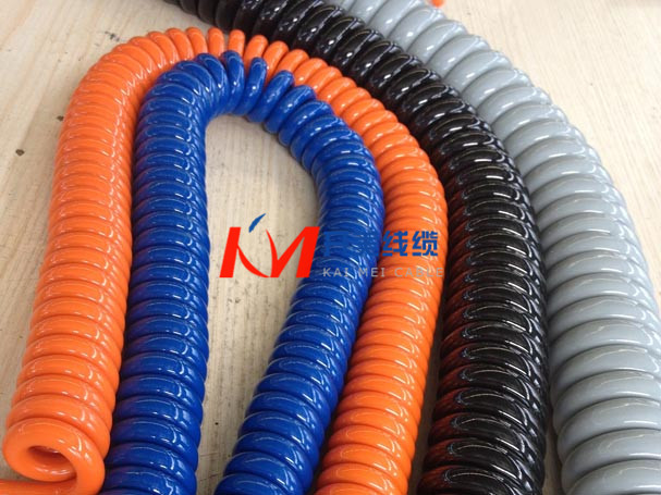 螺旋电缆线 螺旋线绝缘材料:可采用聚氯乙烯,聚乙烯,聚丙烯或叫联聚乙烯及氟塑科,以满足不同场合的要求。