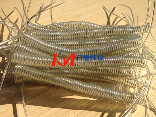螺旋电缆线 螺旋线产品特性:具有良好的柔韧性和弹性(伸长长度可达原弹簧长度3.5-4倍)。有良好的耐寒性,阻燃性,耐油性和耐磨性。可根据场合不同要求生产各类螺旋型弹簧线。