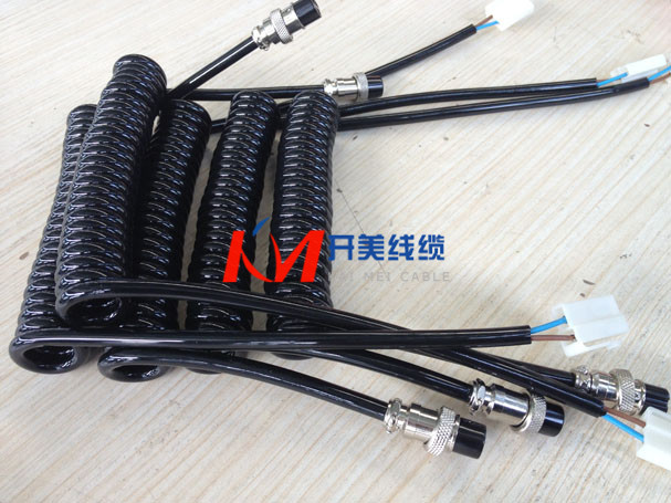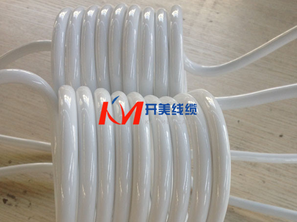 螺旋电缆线 螺旋线绝缘材料:可采用聚氯乙烯,聚乙烯,聚丙烯或叫联聚乙烯及氟塑科,以满足不同场合的要求。