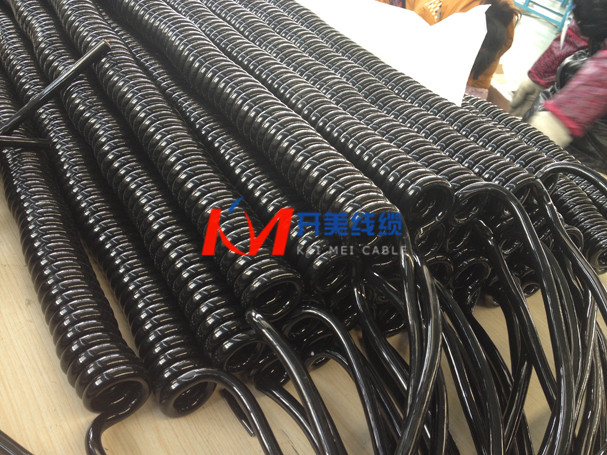 螺旋电缆线 螺旋线绝缘材料:可采用聚氯乙烯,聚乙烯,聚丙烯或叫联聚乙烯及氟塑科,以满足不同场合的要求。