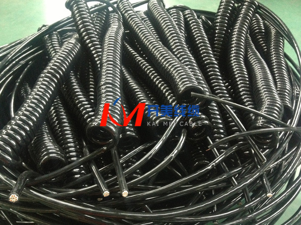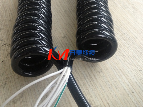 螺旋电缆线 螺旋线绝缘材料:可采用聚氯乙烯,聚乙烯,聚丙烯或叫联聚乙烯及氟塑科,以满足不同场合的要求。